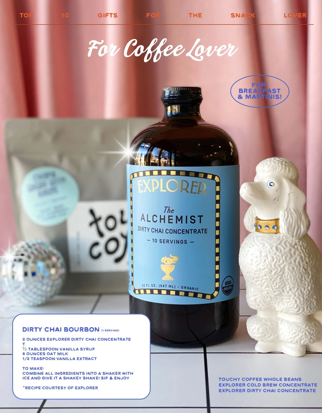 Move over, Aperol Spritz – Espresso Martinis are the new cool kids in town, and Explorer's cold brew and dirty chai concentrates are here to skyrocket your at-home bar game! Plus, they're just as enjoyable without the booze – cheers to a fabulous caffeine buzz, lol!