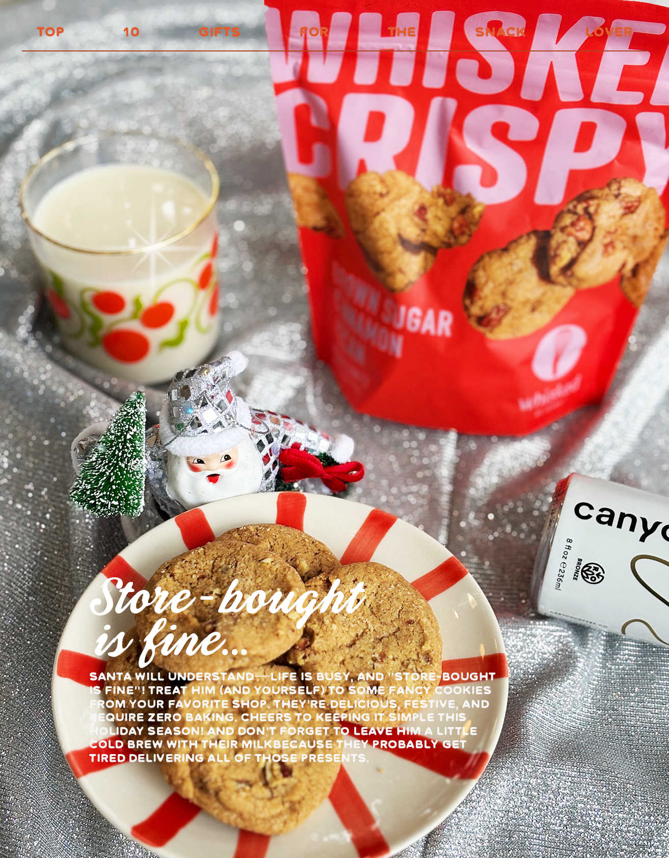 As Ina Garten famously says, "store-bought is fine," and we’re taking that to heart this holiday season! We’re leaving Brown Sugar Cinnamon Pecan Cookies from Whisked by Jenna for Santa, along with a cup of our favorite plant-based milk served in an adorable cherry tomato tumbler. To keep Santa energized for his long night of delivering presents, we’re also including a can of Canyon Coffee—because even Santa deserves the best!
