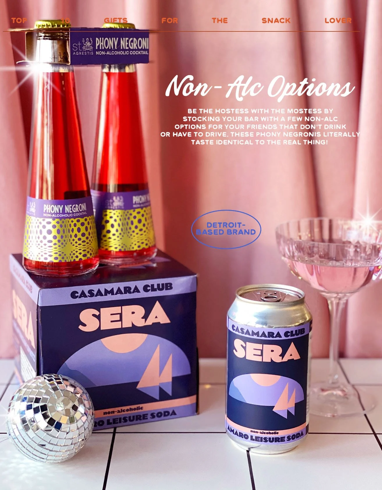 Indulge in the Phony Negroni, a mocktail that tastes exactly like the real deal, minus the passport stamp. And for a bubbly escape, dive into the world of Casamara Club's leisure sodas (did we mention they're female-founded?). These effervescent, floral delights are a layered symphony of unique flavors. Plus they are made right here in Michigan.