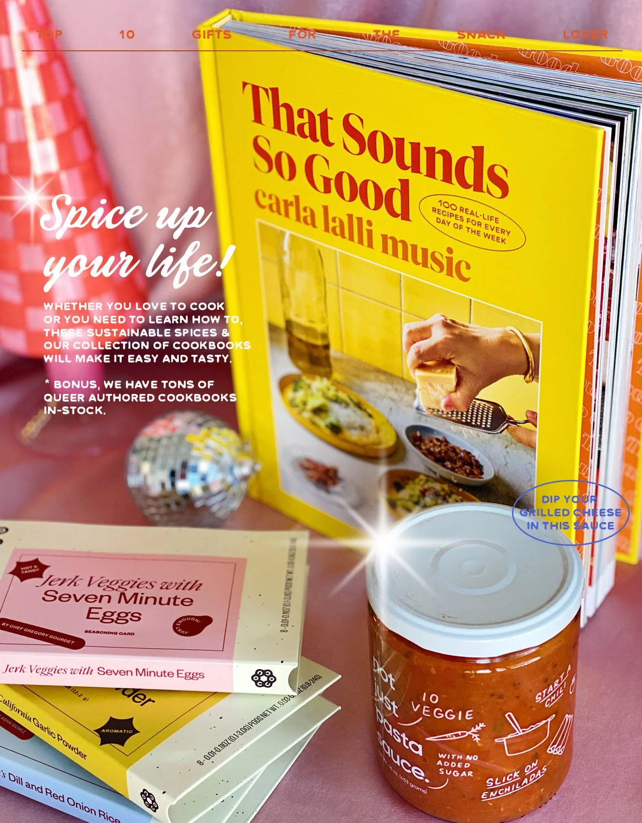 Get ready to spice up your kitchen adventures with our collection of amazing cookbooks! From must-have kitchen staples like Carla's "That Sounds So Good" to new releases from fabulous queer authors such as Jon Kung's "Kung Food" and Jake Cohen's "I Could Nosh," we've got a feast of choices for every palate.